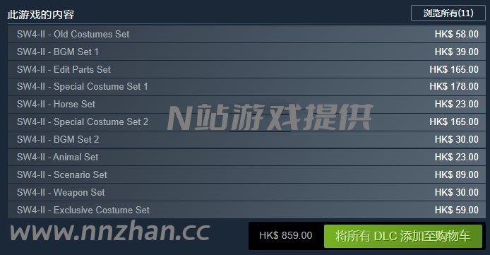本游戏包含的DLC如下图所示(全部)