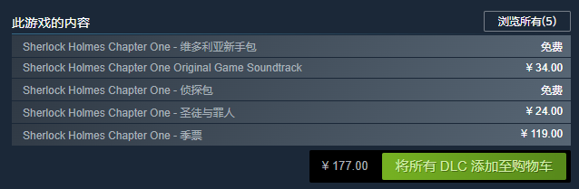 本游戏包含的DLC如下图所示(全部)