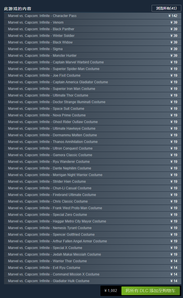 本游戏包含的DLC如下图所示(全部)